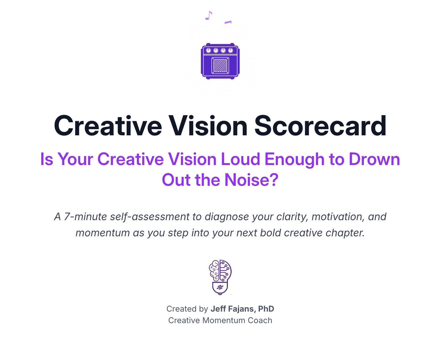 Here's what I'd love for you to do: π Reply to this email and share your responses. Or share the questions you're contemplating about your vision and goals this year. I'll read every response and send you back additional guidance, coaching questions, or suggestions tailored to what you're working through. And if you feel a bit lost or want to try a different approach, you can experiment with a free tool of mine: the Creative Vision Scorecard It's a free, 5-7 minute diagnostic tool that could help you get honest with yourself about where you stand in terms of these four dimensions: π― Clarity: Can you clearly see where you're going, and what you're leaving behind? π Take the free Creative Vision Scorecard. You'll get instant results, a complete PDF report, and personalized insights for your lowest-scoring dimension. And feel free to hit reply after you take and share with me: